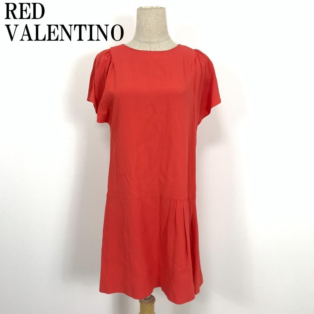 > LA7339 レッドヴァレンティノ RED VALENTINO フレア 切り替えギャザー 朱色 レーヨン 半袖ワンピース レッド 38