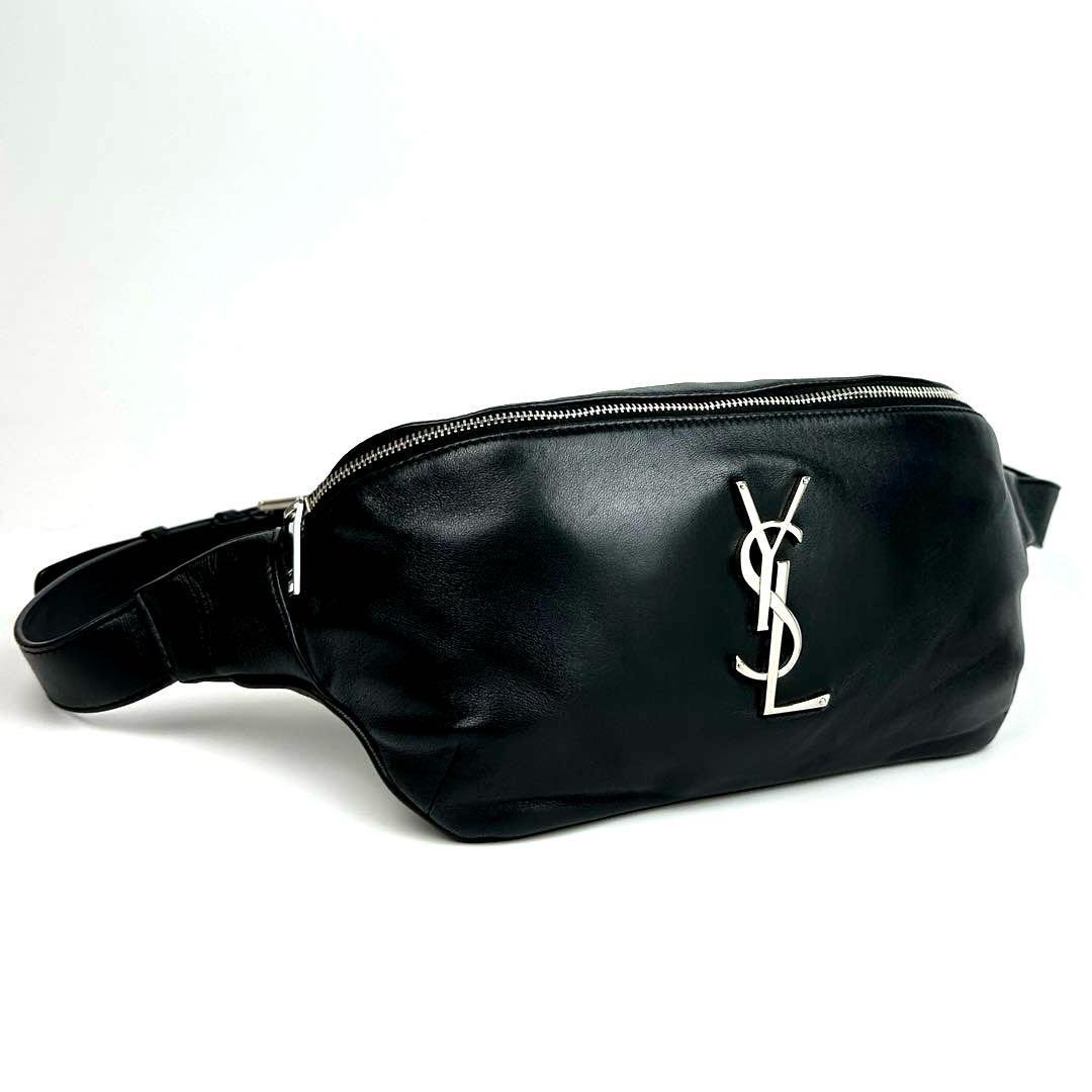 - 美品■SAINT LAURENT サンローラン ウエストバッグ YSL カサンドラ シルバー金具 ショルダーバッグ 肩掛け レザー 黒 ブラック フォーマル
