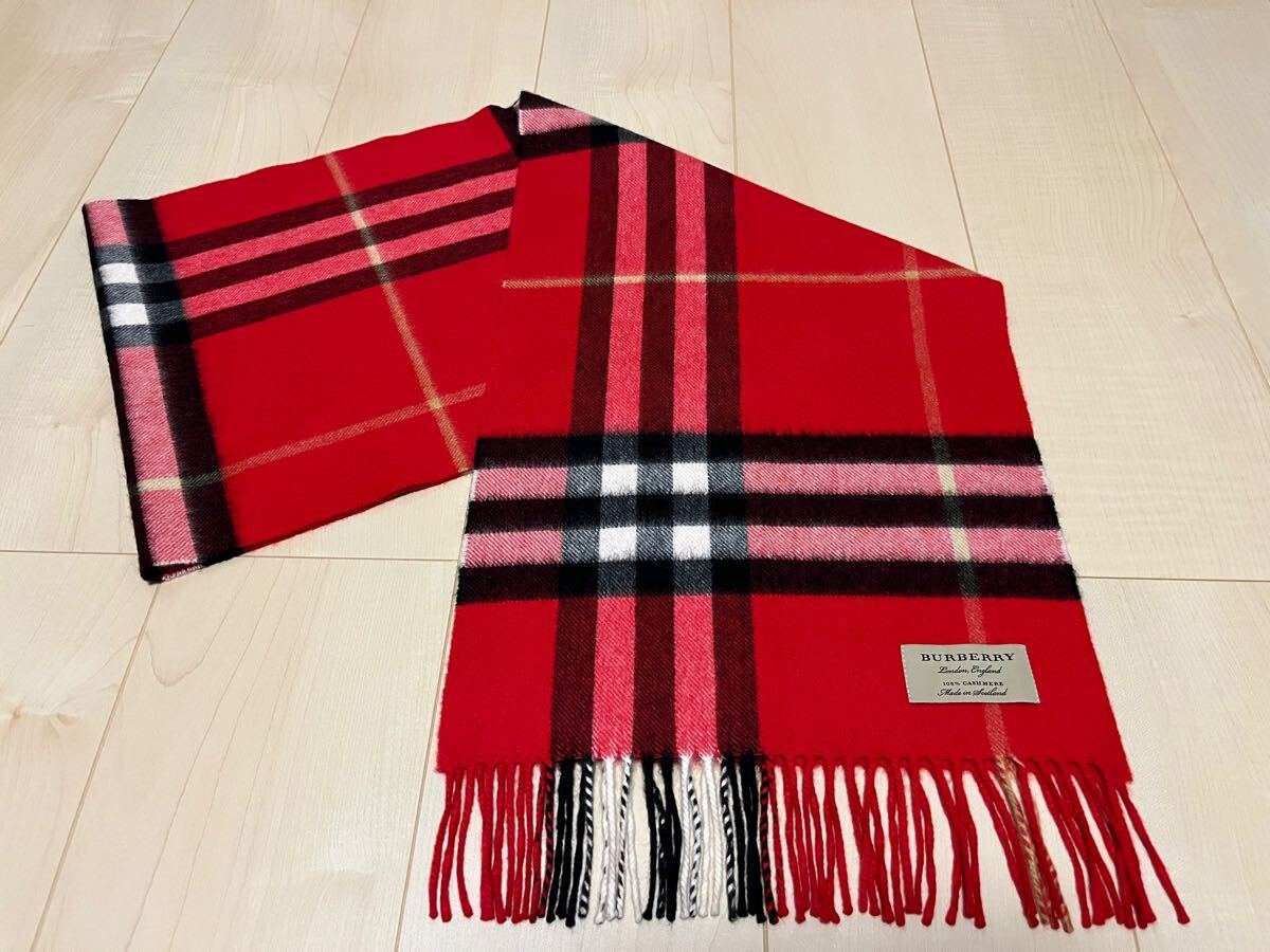 - BURBERRY バーバリー マフラー カシミア100% 未使用に近い 赤系 送料無料!!