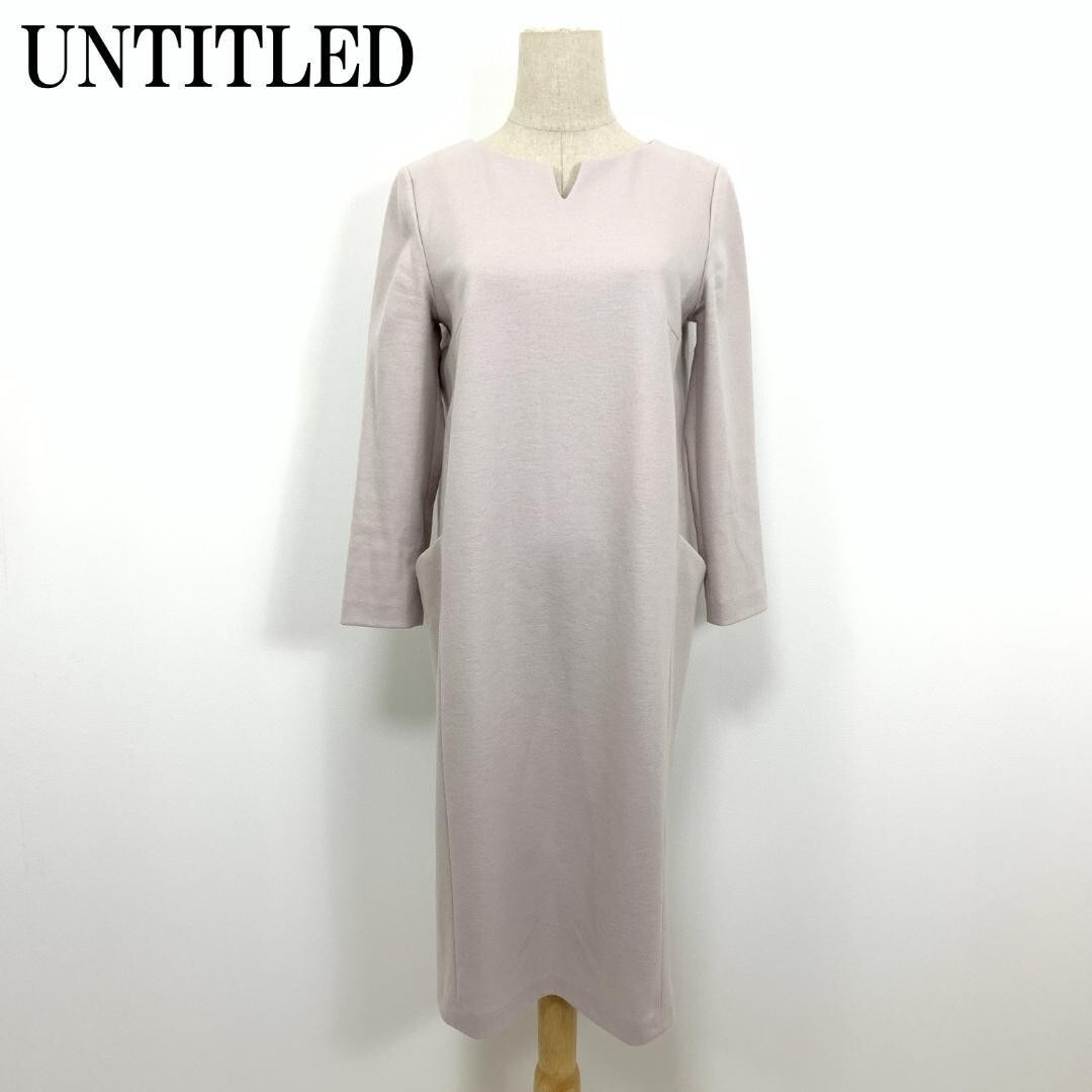> LA5423 UNTITLED アンタイトル 長袖ロングワンピースVカット サイドポケット シンプル フォーマル ウール100% グレー 2
