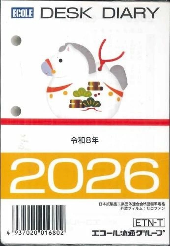 - @【即決】▽2026年 デスクダイアリー▽ エコール 卓上日記 卓上カレンダー 替玉 タテ 日めくり 専用台なし // ETN-T