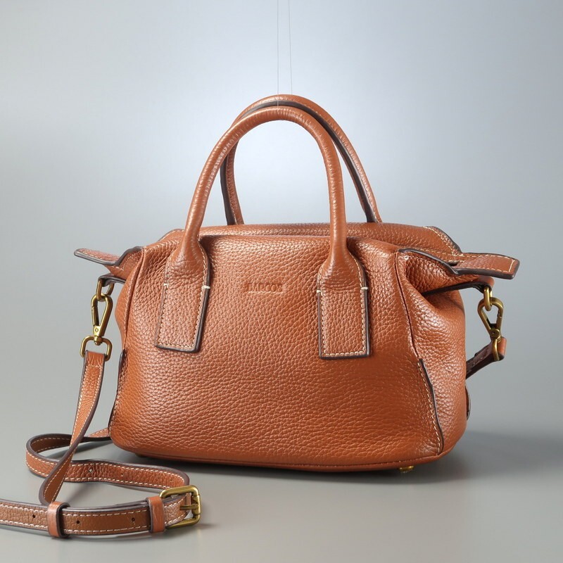 - MI1671*BARCOS バルコス シュリンクレザー 2way ショルダー付き ハンドバッグ ミニボストンバッグ クロスボディバッグ 鞄 ブラウン