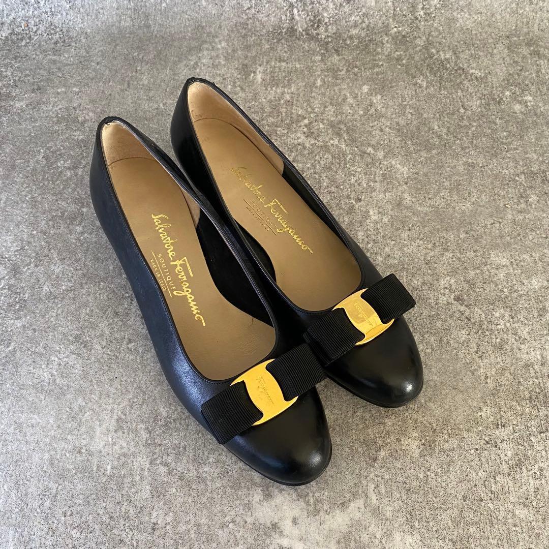 - フェラガモ パンプス ヒール オールレザー ヴァラリボン ブラック 黒