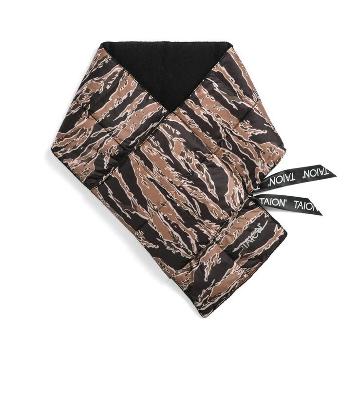 - <ブラックゴールド/タイガーカモ>タイオン TAION ベーシック ダウンマフラー TAION-201A 男女兼用 フリース コンパクト収納 洗濯可能