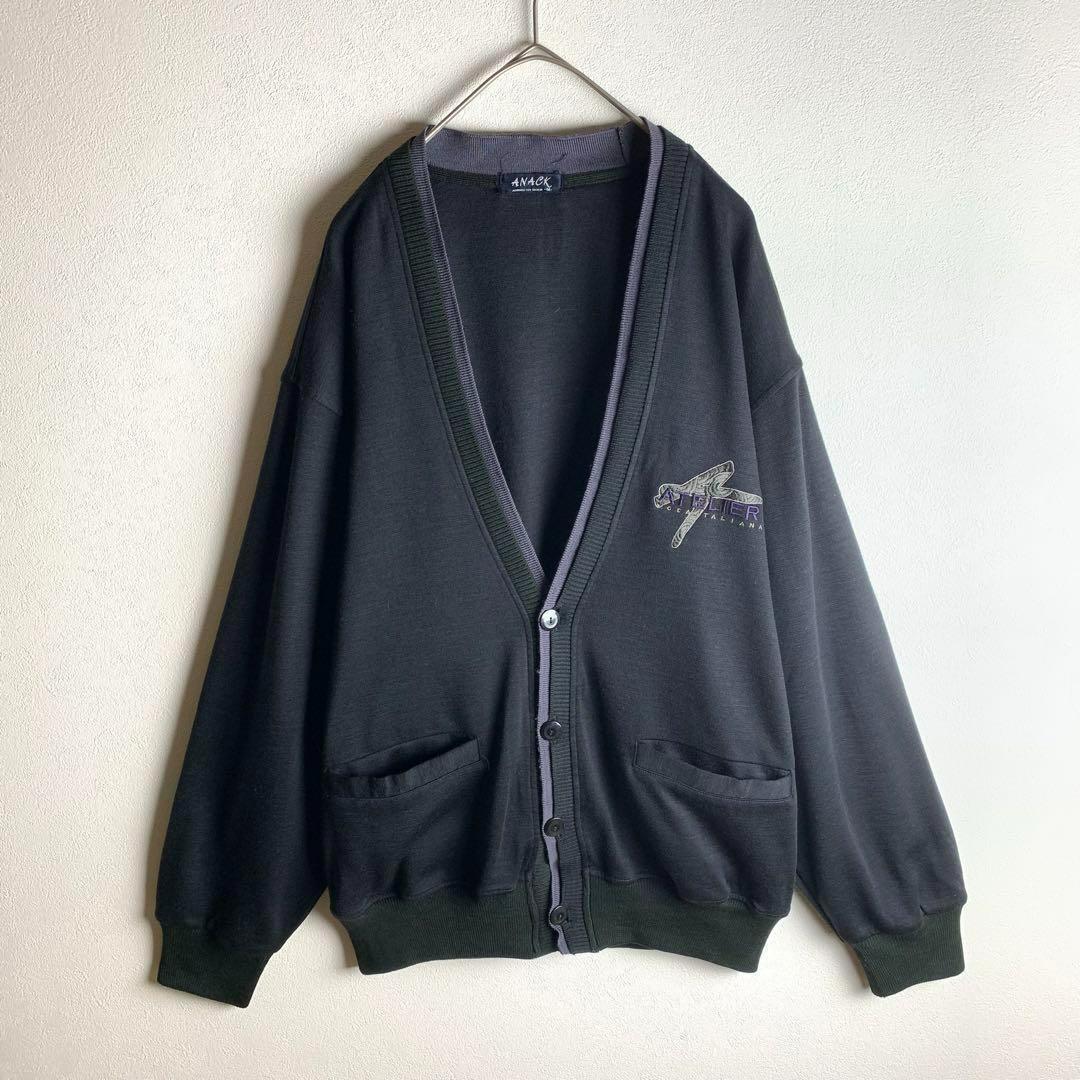 - カーディガン 刺繍 パイピング風 黒 紫 ブラック パープル レトロ ユニセックス 古着
