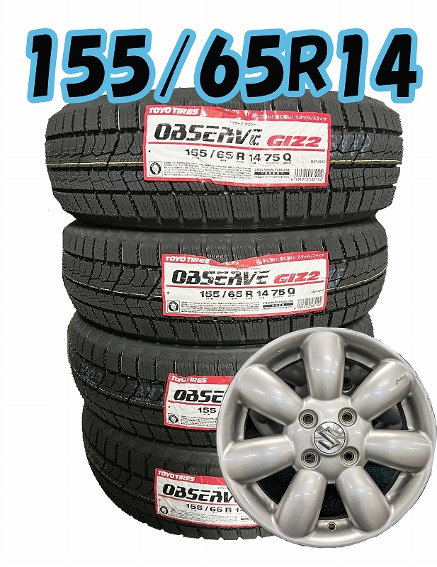 - 2025年製 155/65R14 75Q TOYO OBSERVE GIZ2 新品 スタッドレス/中古アルミホイール 4本【組み付け無料バランス込み】TZ-5