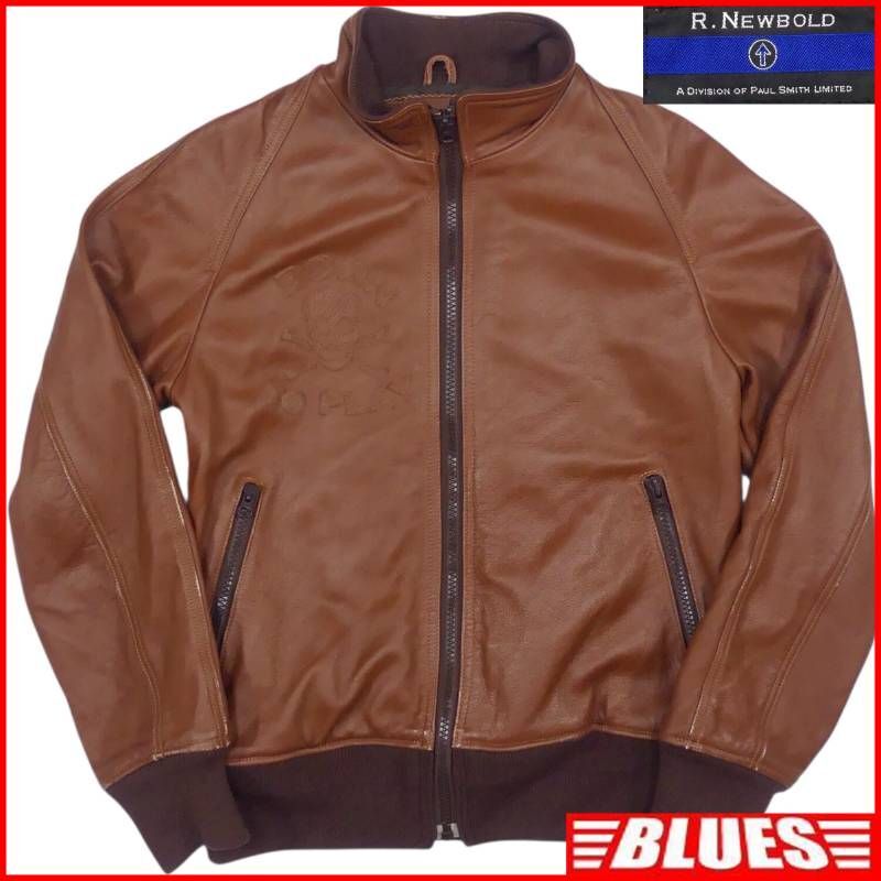 - 即決★R.NEWBOLD★メンズ L ライダースジャケット アールニューボールド 茶 レザー 髑髏 ブルゾン ドクロ 本革 シングル 本皮