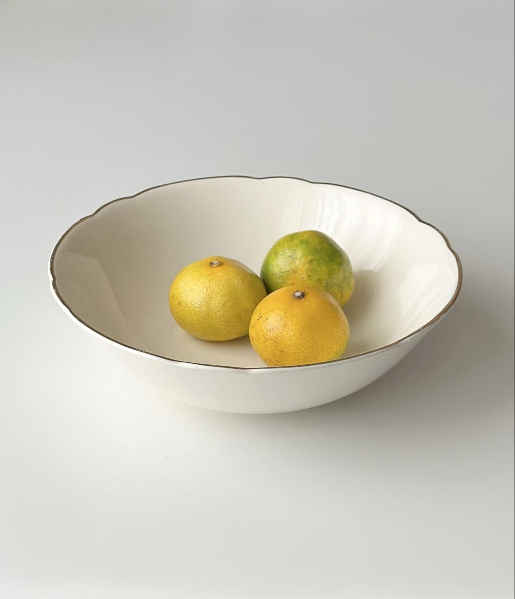 - ドイツ アンティーク 皿 Villeroy&Boch ビレロイボッホ / アイボリーの花リムボウル (ヴィンテージ ブロカント フランス 大皿)