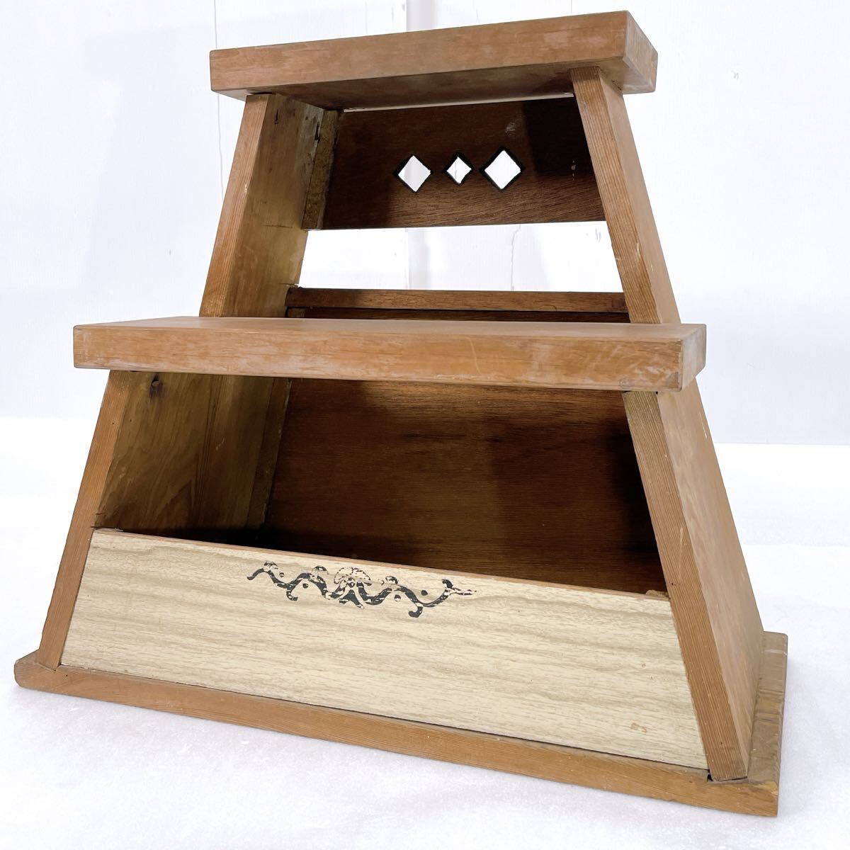 - ★昭和レトロ★ 木製 2段 踏み台 花台 飾り台 スツール 古道具 当時物 アンティーク インテリア