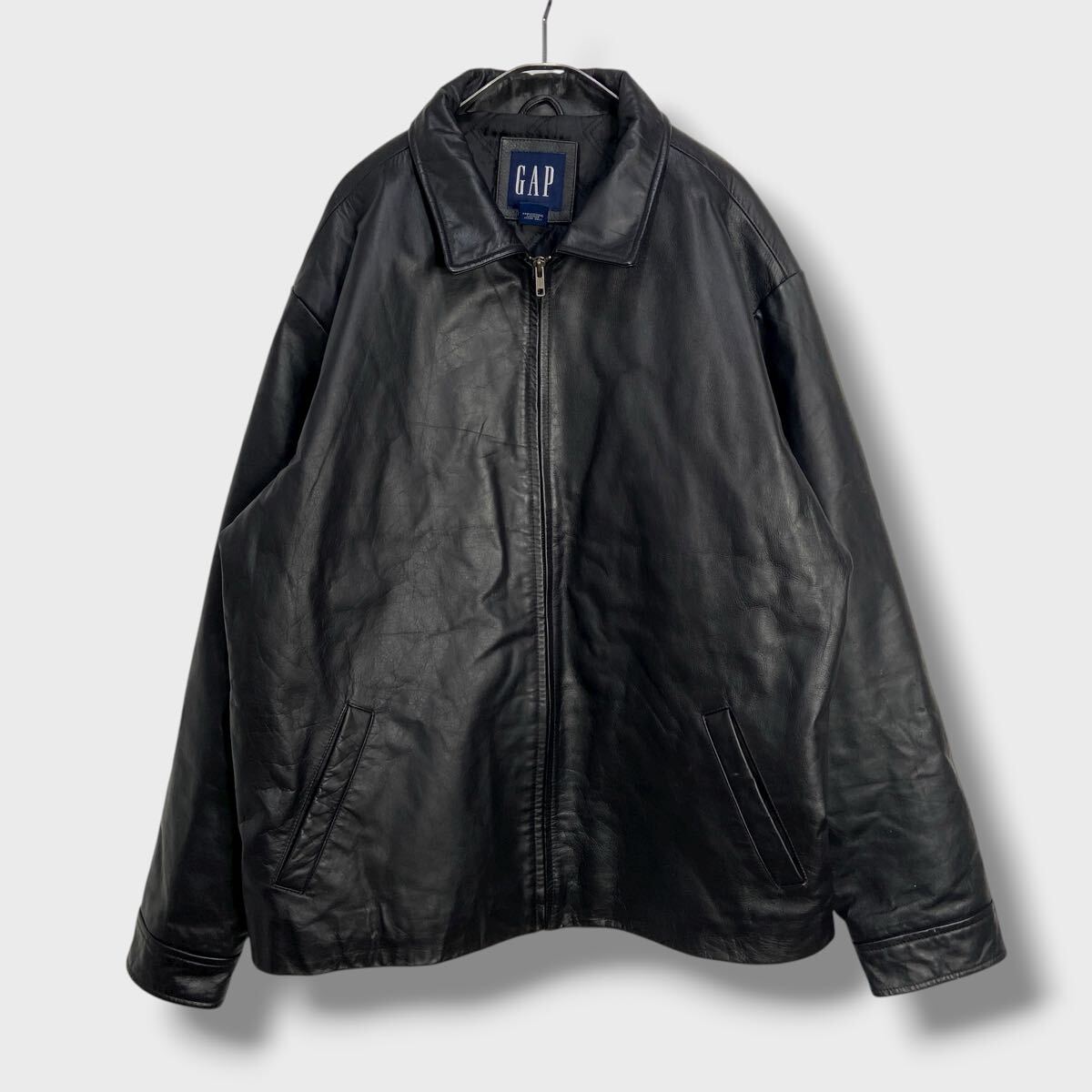 - 送料無料☆90s☆GAP☆オールドギャップ☆レザージャケット☆スポーツジャケット☆黒☆XL