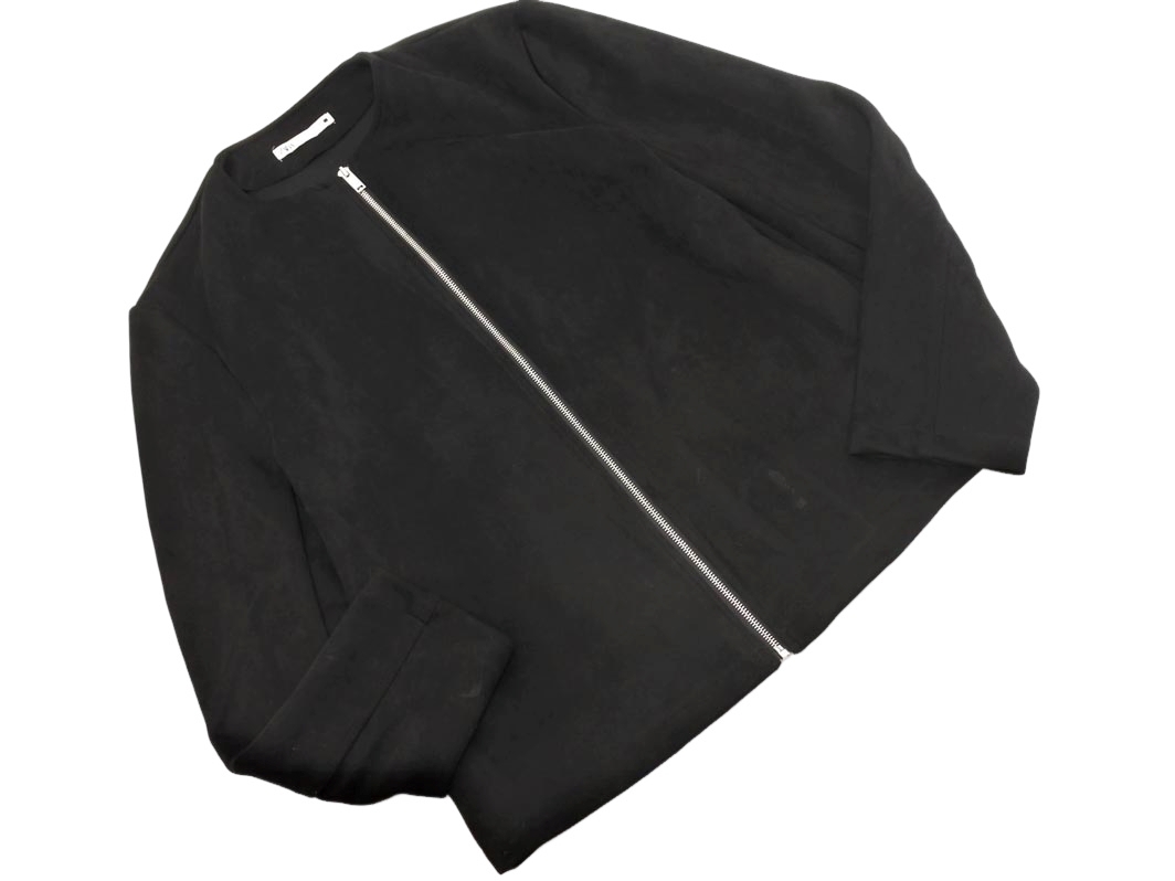 > ZARA ザラ スウェード調 ジップアップ ノーカラー ジャケット sizeM/黒 ◇■ ☆ fjb4 メンズ