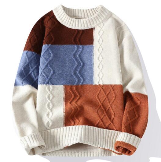 > 上質M 新品ニットセーター ウール混 メンズ プルオーバー トップス 編み クルーネック 長袖 4配色 厚手 暖かい 秋冬/オレンジ