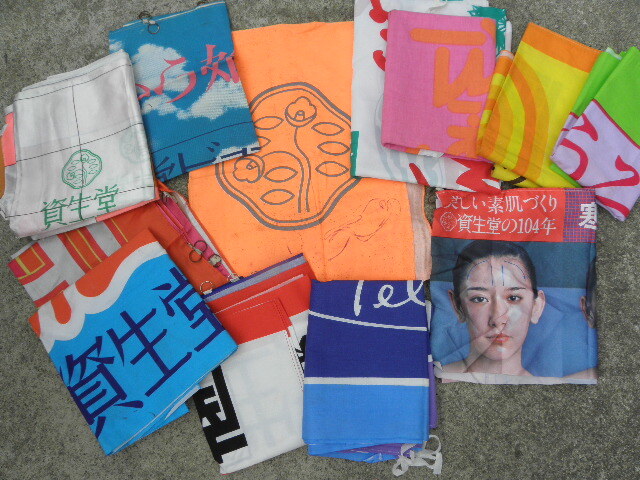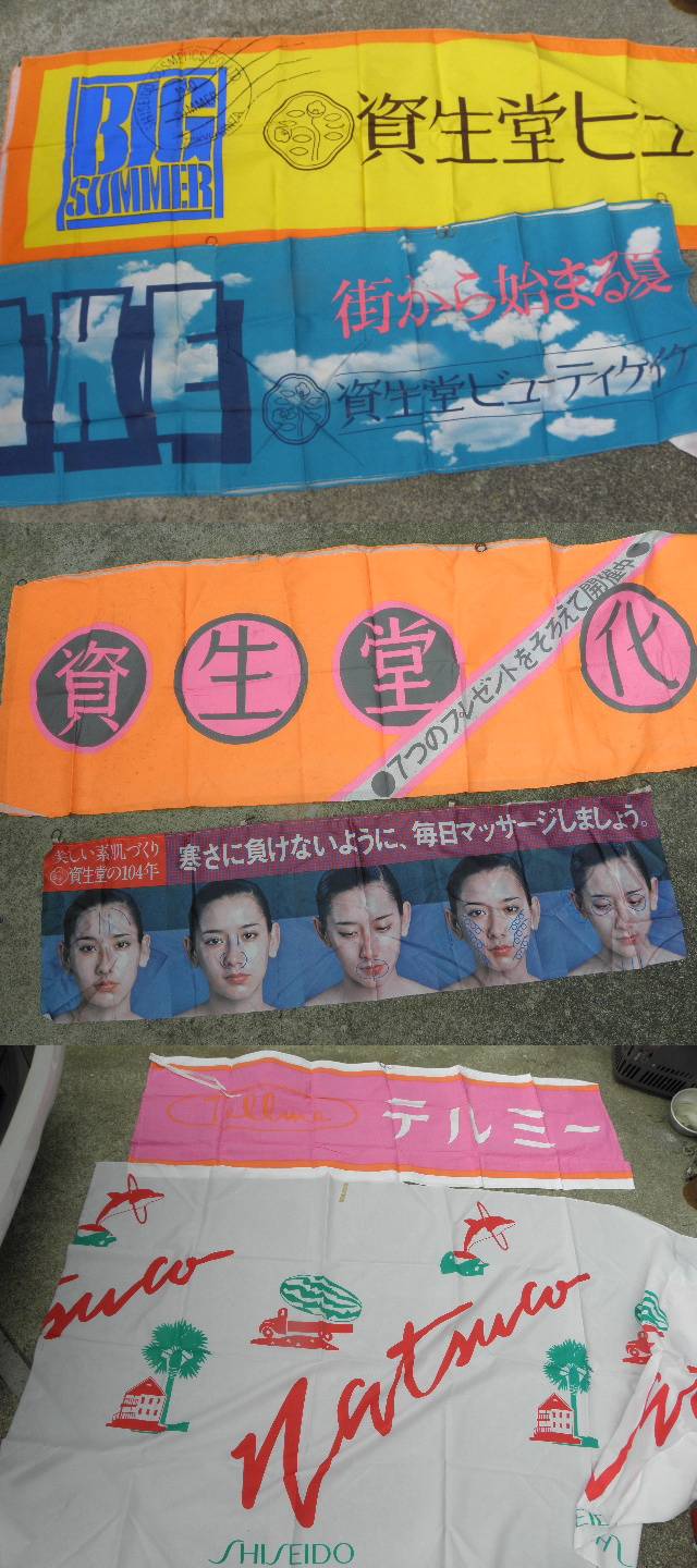- 50 資生堂 テルミー 化粧品 のれん のぼり 12枚 まとめて / 昭和レトロ 当時物 旗 化粧品 美人 美容 看板 暖簾 広告 古い 昔