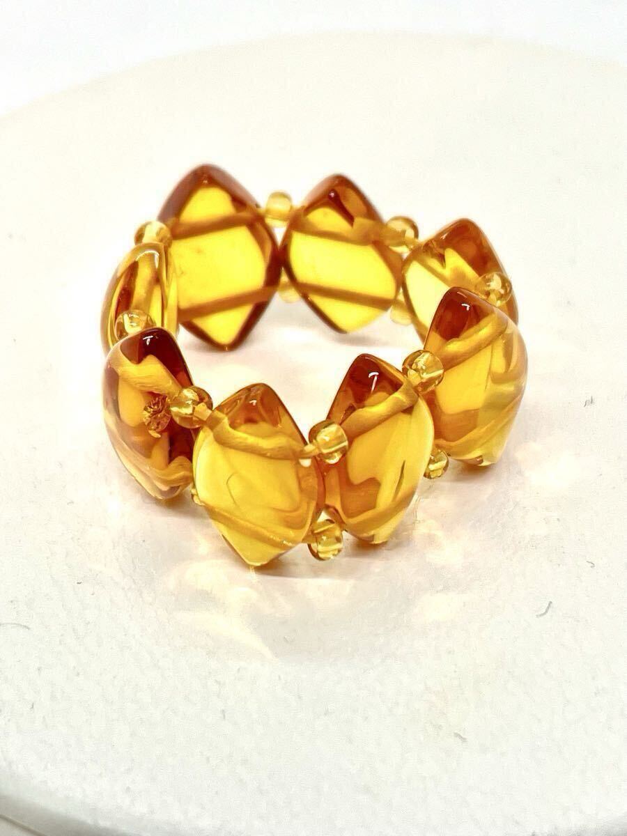 > 【新品】リトアニア産琥珀リング*こはく*コハク*フリーサイズ*イエロー琥珀*アンバー*伸縮リング*天然琥珀*アンバー