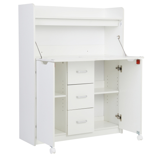 - 【ホワイト】学習机 デスク パソコンデスク 勉強机 折り畳み天板 引き出し pcデスク 棚付き 収納 省スペース リビング学習 ワーク KU198