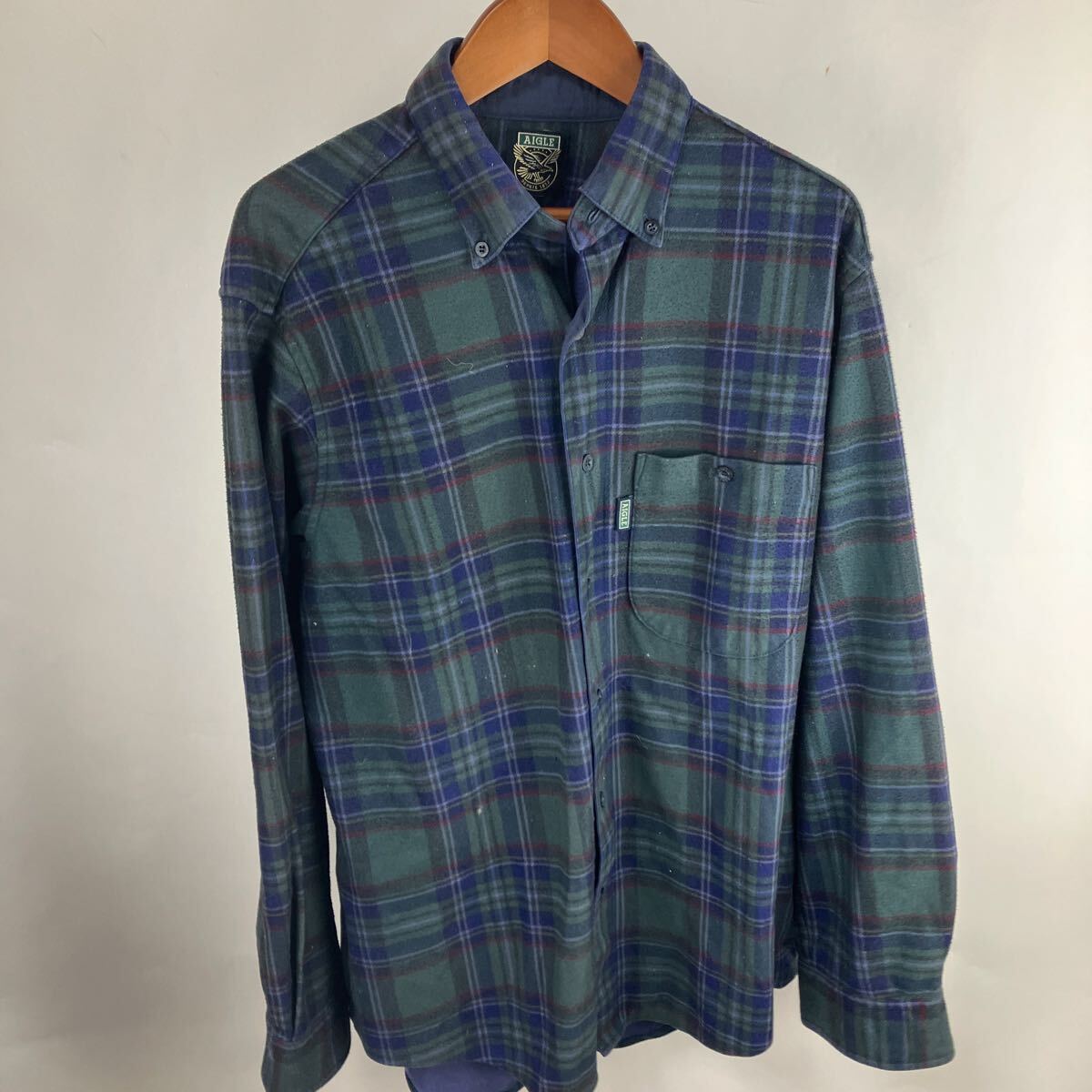 > チェック L 長袖シャツ ボタンダウン コットン XL アメリカ古着 胸ポケット チェック柄 AIGLE イーグル ストリート カジュアル 激安古着