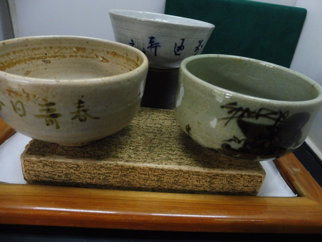 - 抹茶碗 未使用同様 3点 唐津風、米若 陶印あり