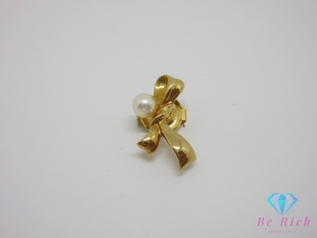 > 田崎真珠 TASAKI K18 YG 真珠 5mm パール 付 デザイン ブローチ 18金 750 イエロー ゴールド ジュエリー【中古】【送料無料】ba3526