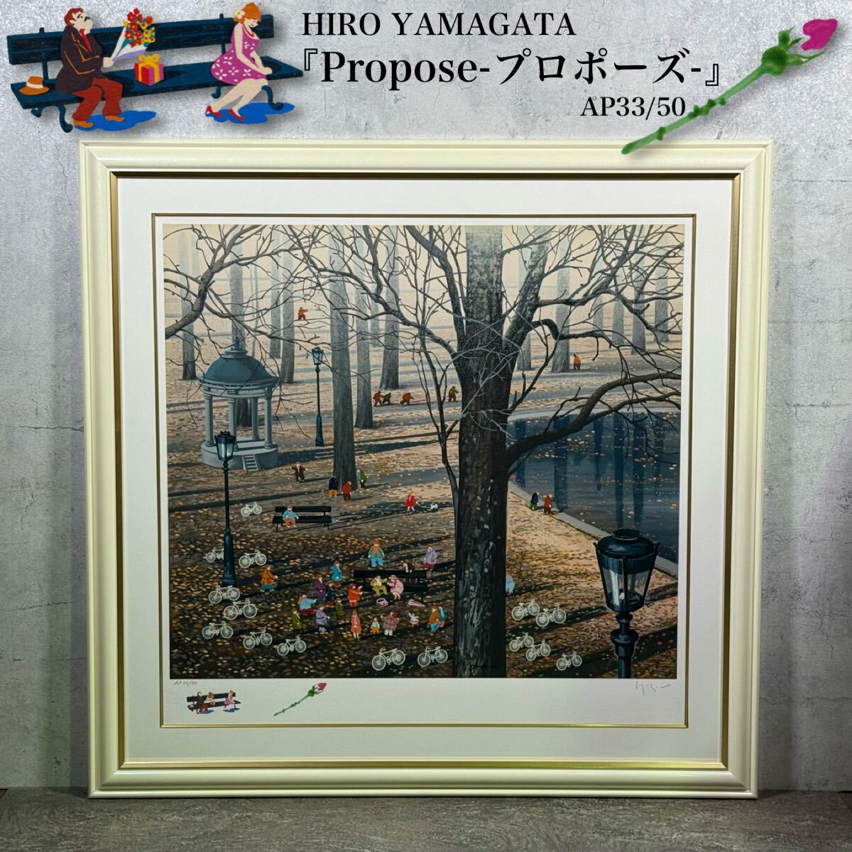 - MJ251008-10【真作保証】HIRO YAMAGATA ヒロ ヤマガタ 『プロポーズ』 シルクスクリーン AP版 33/50 水彩リマーク 直筆サイン 版画 額装