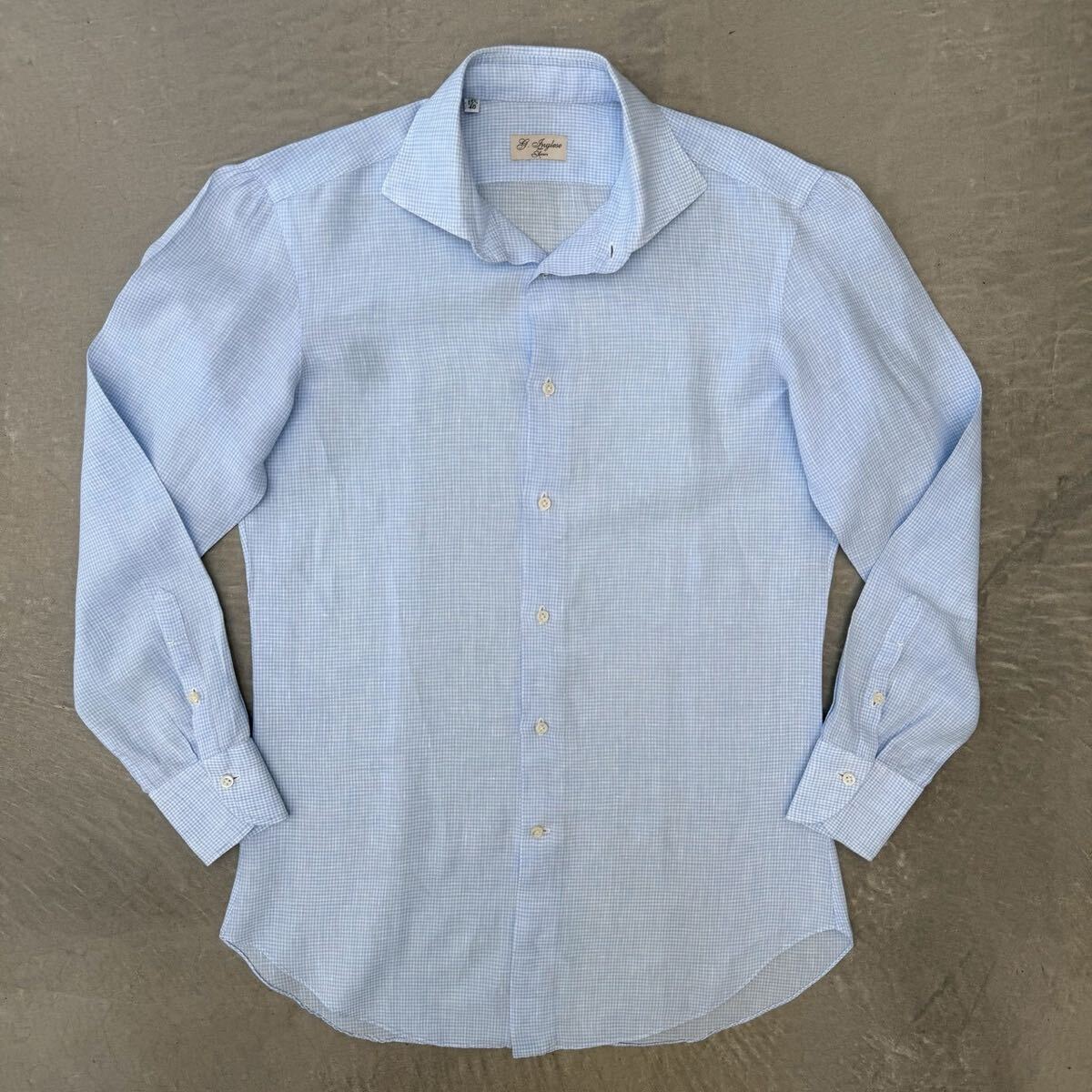 - 【美品】 ジ イングレーゼ◆シャツ リネン チェック サックスブルー G.Inglese ドレスシャツ コットンシャツ ビジネスシャツ ワイシャツ