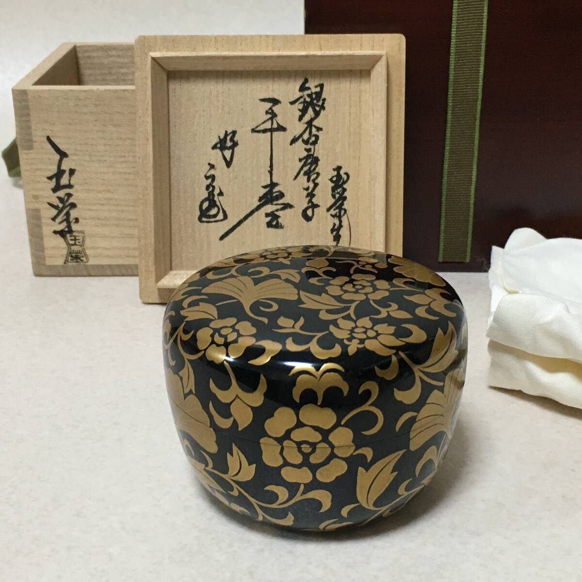 - E832 高木玉栄 鵬雲斎好み 銀杏唐草 棗 平棗 蒔絵 共箱 二重箱 茶器 茶道具