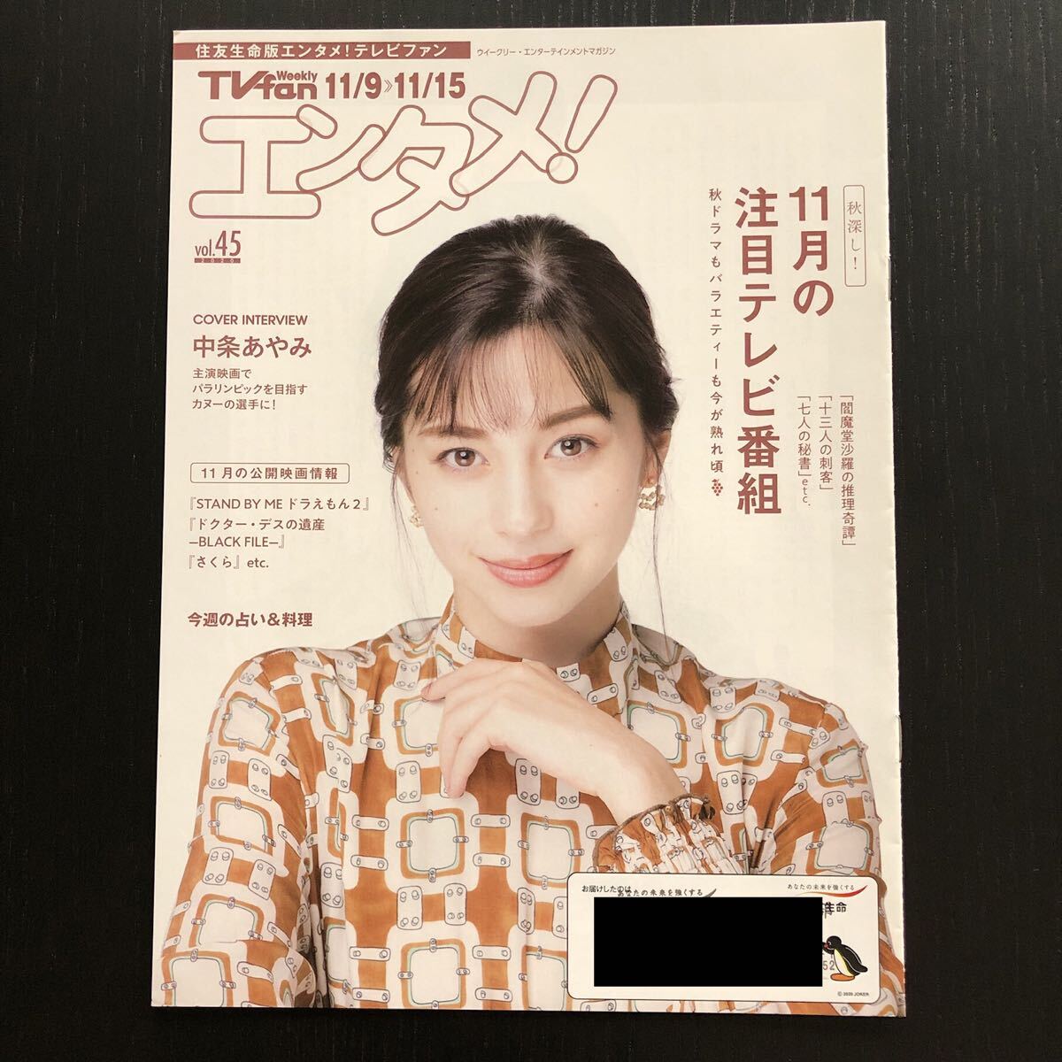 - ☆〔非売品〕住友生命 Weekly TVfan エンタメ! 中条あやみ☆水上のフライト☆2020年☆