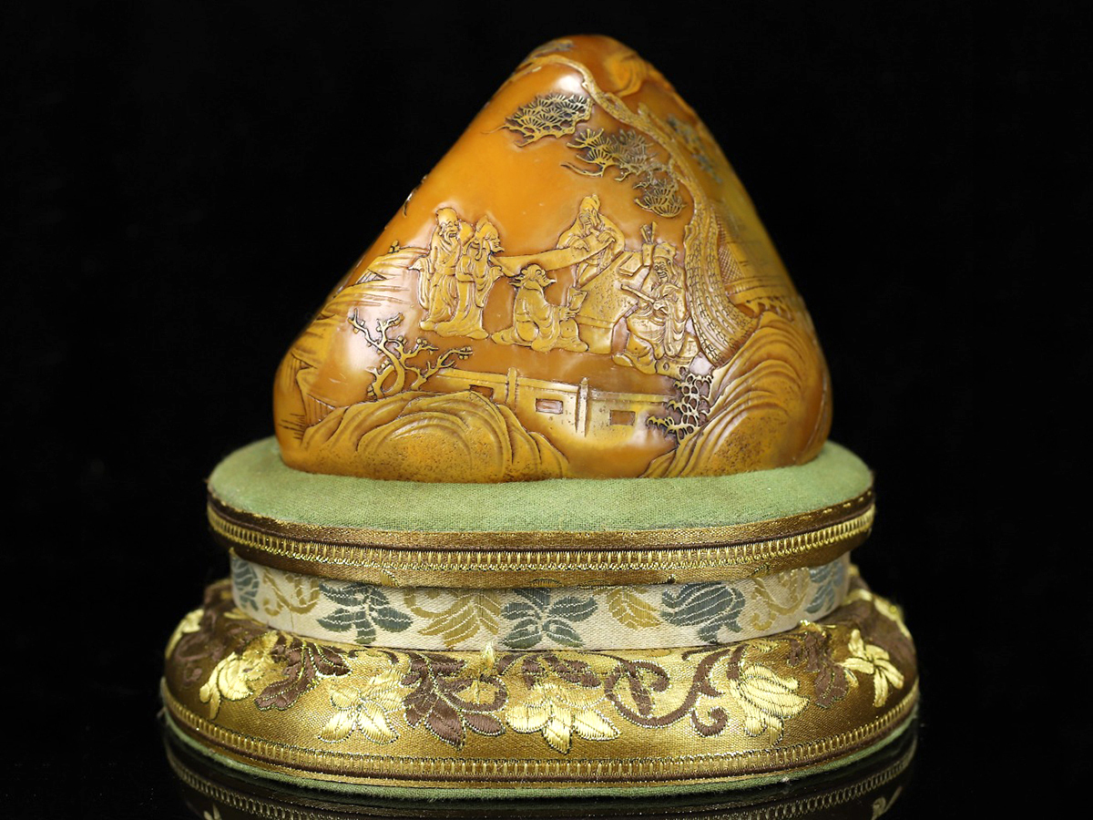 - ▽鴻▽清時代 林皋銘 寿山田黄石彫 詩詞歌賦図置物 共箱 時代物 中国古美術 骨董品