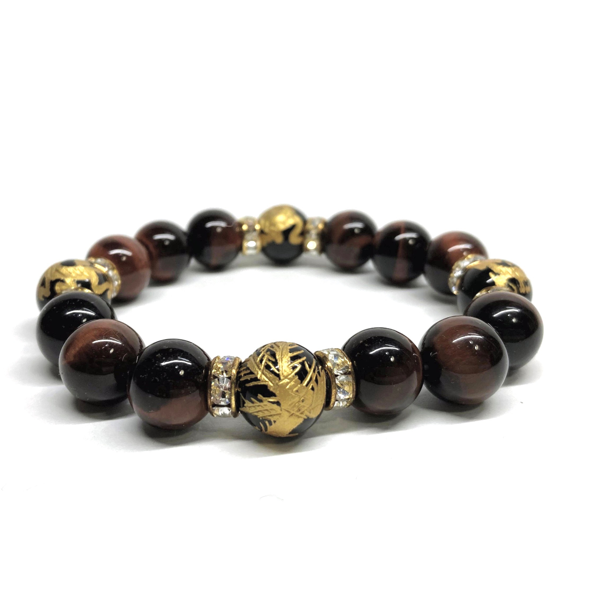 - 四神獣金彫オニキス×レッドタイガーアイ 12mm パワーストーン ブレスレット 天然石 青龍 白虎 玄武 朱雀 運気上昇 開運 金運 お守り G