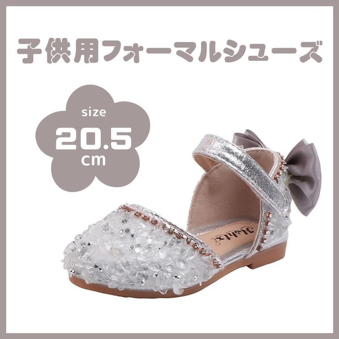 - 【大人気♪】20.5cm シルバー キッズ フォーマルシューズ ビーズ ストーン