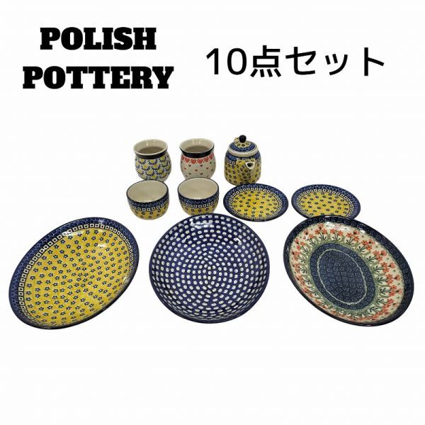 > Polish Pottery ポーリッシュポタリー 食器 まとめ売り 10点セット ポット マグカップ 皿 洋食器 北欧 植物 ハート 可愛い ◇-000277