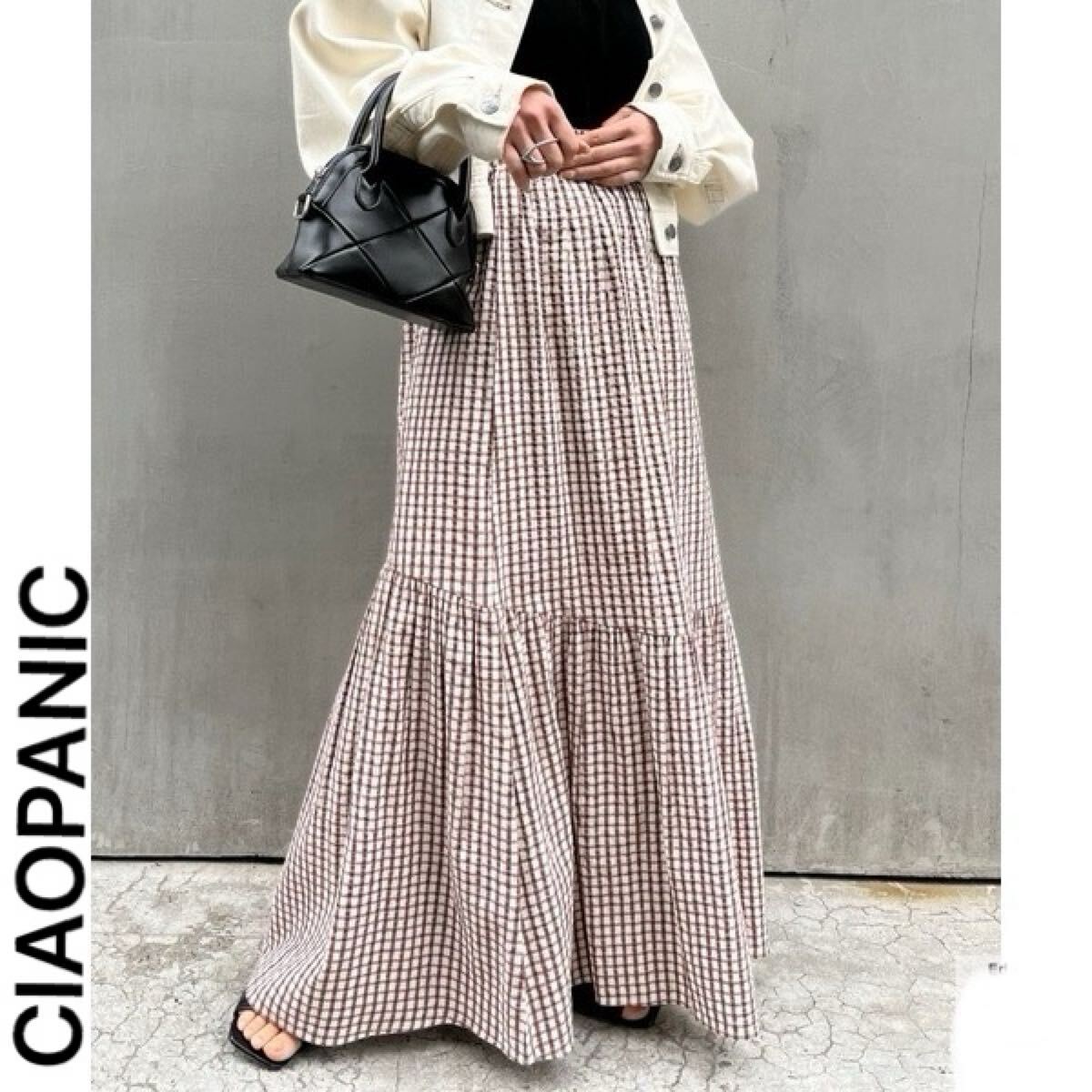 > CIAOPANIC チェックティアードスカート チャオパニック 柄 ロングスカート マキシスカート ボトムス 未使用 ブラウン フリーサイズ
