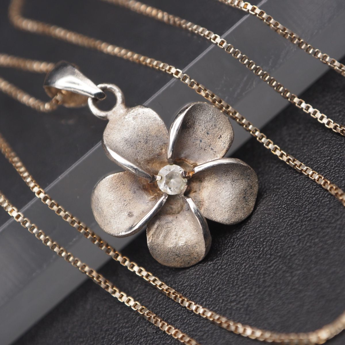 > G343 ハワイアンジュエリー 925 ITALY刻印 ペンダント ネックレス プルメリア ダイヤモンド風 デザイン シルバー