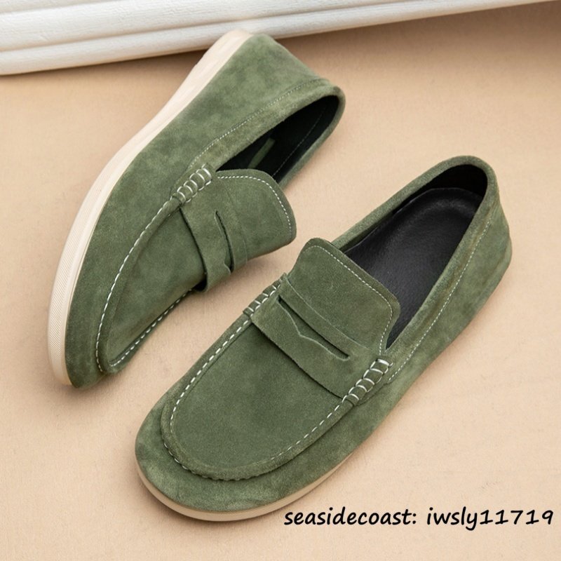 - 最高級★ビジネスシューズ 本革 メンズ 職人手作り ローファー スリッポン スエード革 レザーシューズ 牛革 紳士靴 革靴 グリーン 26.5cm