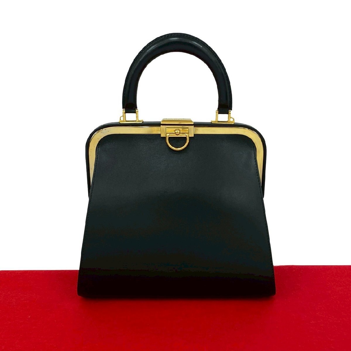- 極 美品 希少品 Christian Dior ディオール ロゴ 金具 レザー 本革 ターンロック ハンドバッグ ミニ トートバッグ ブラック 02811