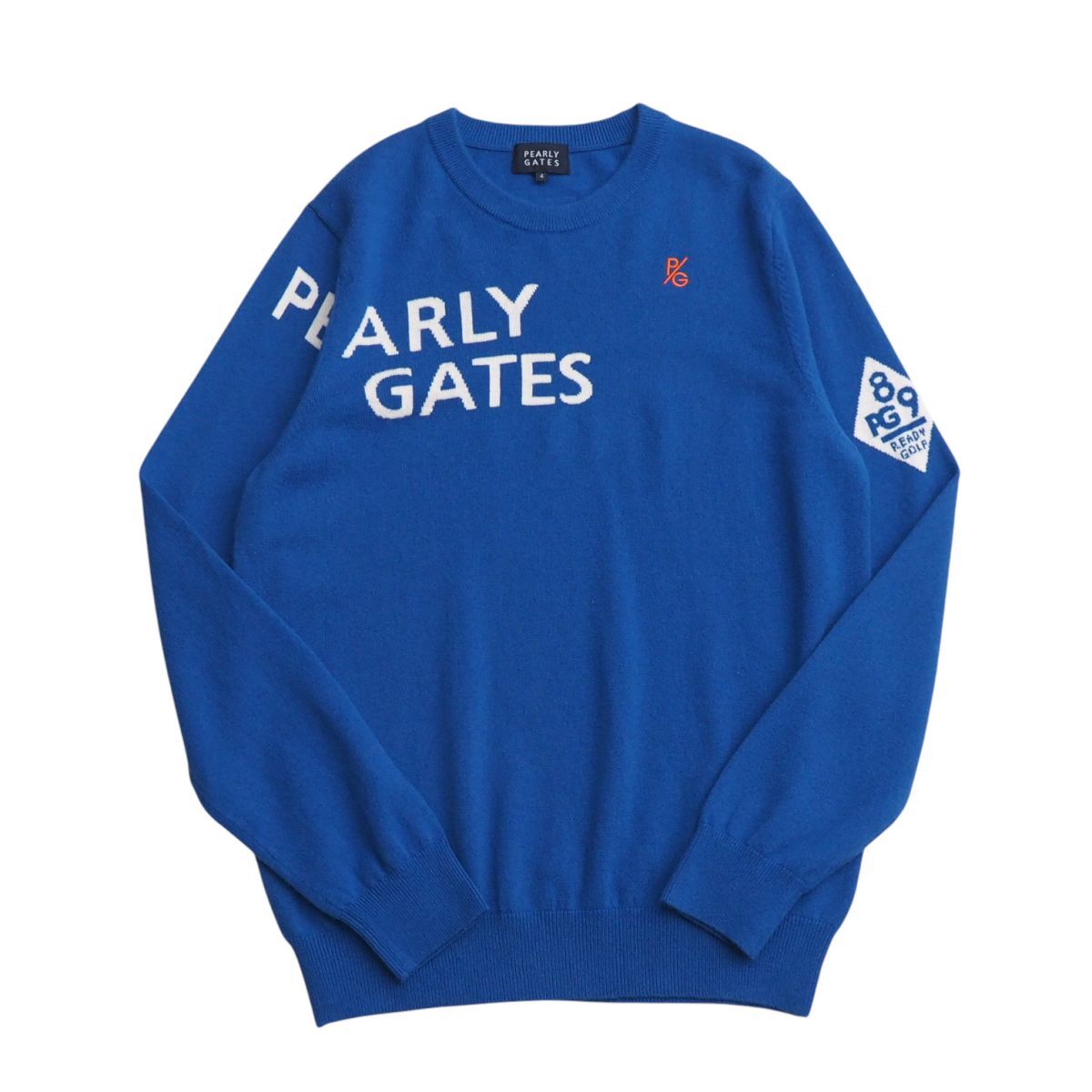- TI9082+PEARLY GETES/パーリーゲイツ*メンズ4*カシミヤウール*ニットセーター*ハイゲージ*ゴルフウェア*クルーネック*ブルー系