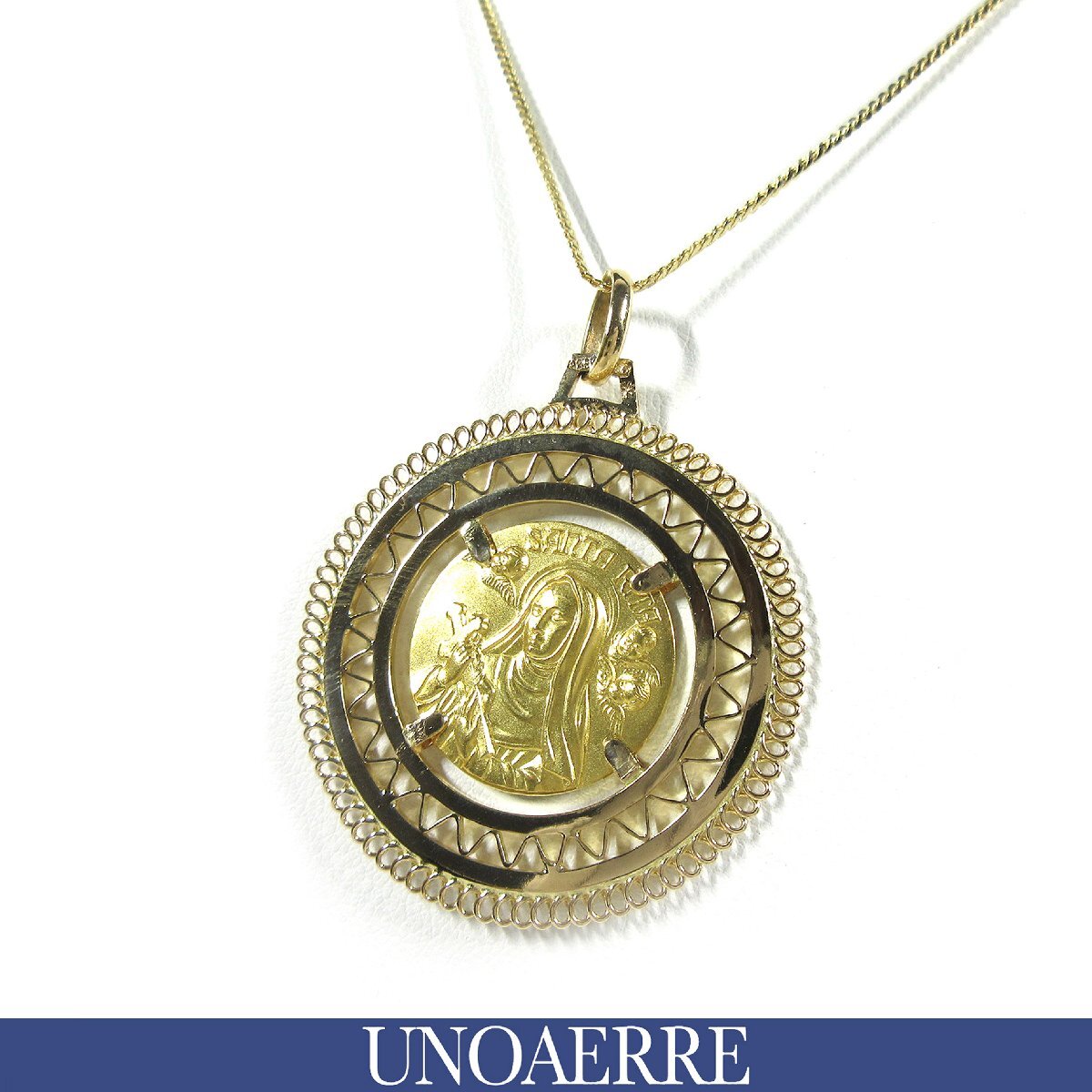 > ウノアエレ K18YG カシアの聖リタ エンジェル コイン 透かしペンダントトップ イエローゴールド ネックレス 59.5cm 16.1g J356