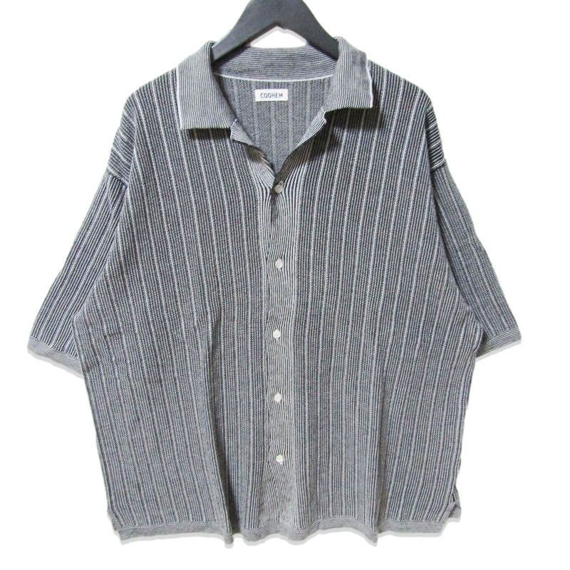 > 美品 COOHEM コーヘン 半袖ニットシャツ 13-242-025 COTTON STRIPE KNIT S/T 米富 日本製 半袖シャツ ブラック 黒 XL 27111463