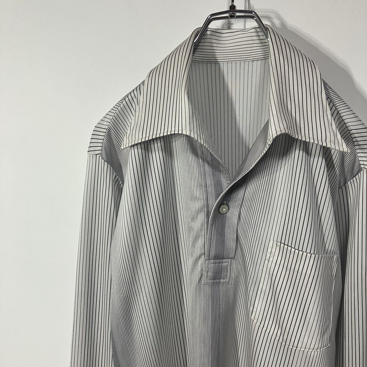 > 古着 ヴィンテージ グラデーション ストライプ モノトーン レトロ ポケット ポリ 天竺 長袖 ポロシャツ ホワイト ブラック M