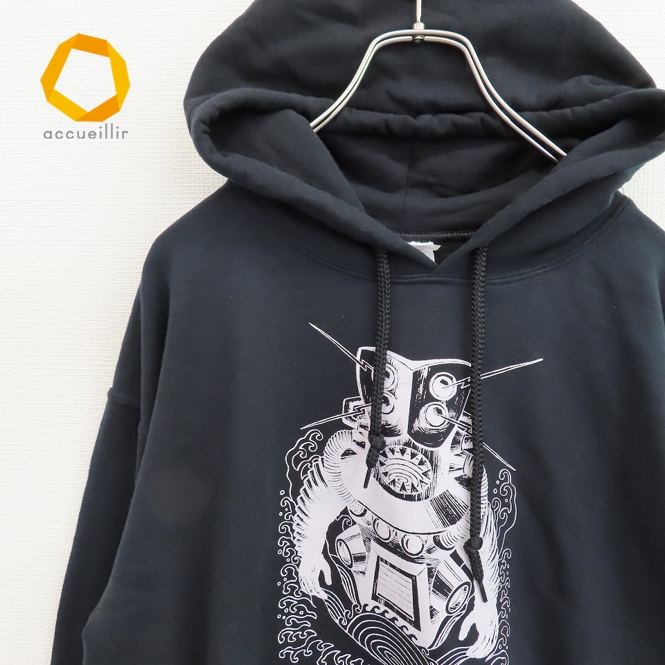 【ブランド】 GILDAN ギルダン Heavy blend【アイテム】パーカー【表記サイズ】M【平置き実寸】肩幅:約 58cm袖丈:約 57cm着丈:約 64cm身幅:約 54cm【状態】目立った傷や汚れなし【備考】-【色】黒系【素材】画像をご参照くださいキーワード/アクイール/古着/used/ビンテージ/ヴィンテージ/スウェット/裏起毛/プルオーバー/