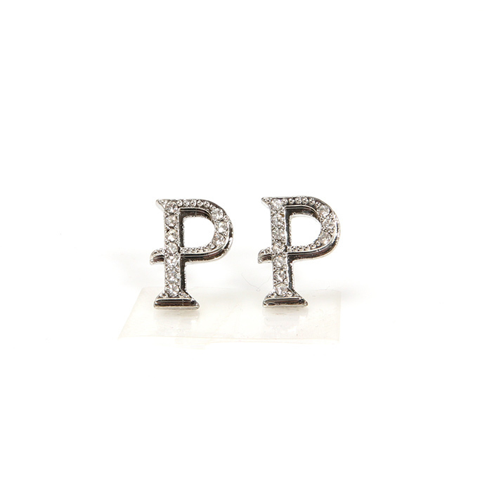 - 【新品】【P】ピアス アルファベット シルバー 銀色 メンズ レディース イニシャル ジルコニア スタッド ピアス おしゃれ 両耳用 (2個売り)