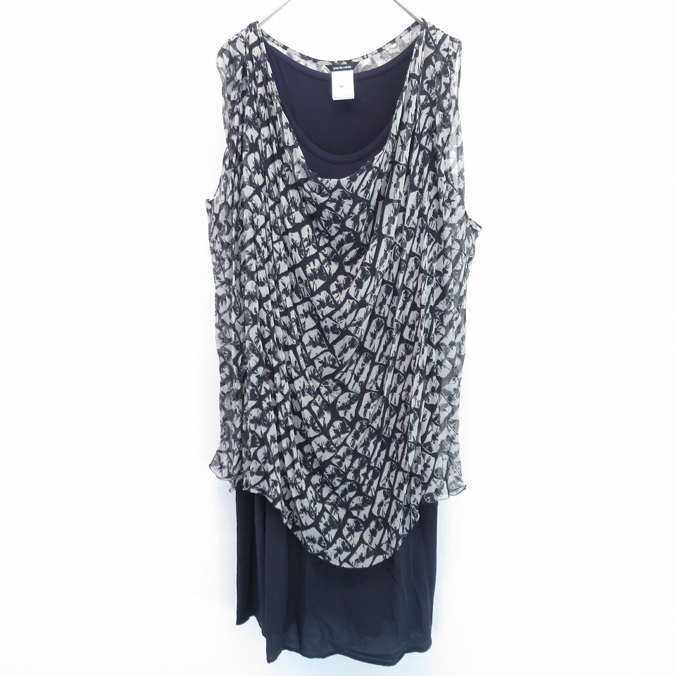 【ブランド】パドカレ pas de calais【アイテム】ワンピース【表記サイズ】38【平置き実寸】トップス肩幅:約 38cm着丈:約 77cm身幅:約 61cmインナー肩幅:約 35cm着丈:約 105cm身幅:約 47cm【状態】目立った傷汚れなし【備考】-【色】紺系 MIX【素材】画像をご参照くださいキーワード/アクイール/古着/used/ビンテージ/ヴィンテージ/シルクワンピ/チュニック/ノースリーブ/