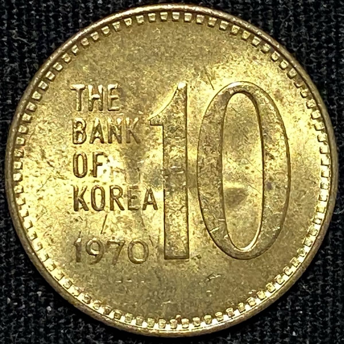 - 韓国 WON 10WON 1970年黄銅貨 特年 未使用 韓国硬貨 海外コイン 外国コイン 古銭 コイン 硬貨