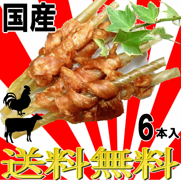 > ■833円~■全国送料無料!【国産ササミ巻棒ガム】6本入 人気の国産天然素材使用の愛犬用おやつ 鶏肉ささみと棒ガムとの組み合わせは最強