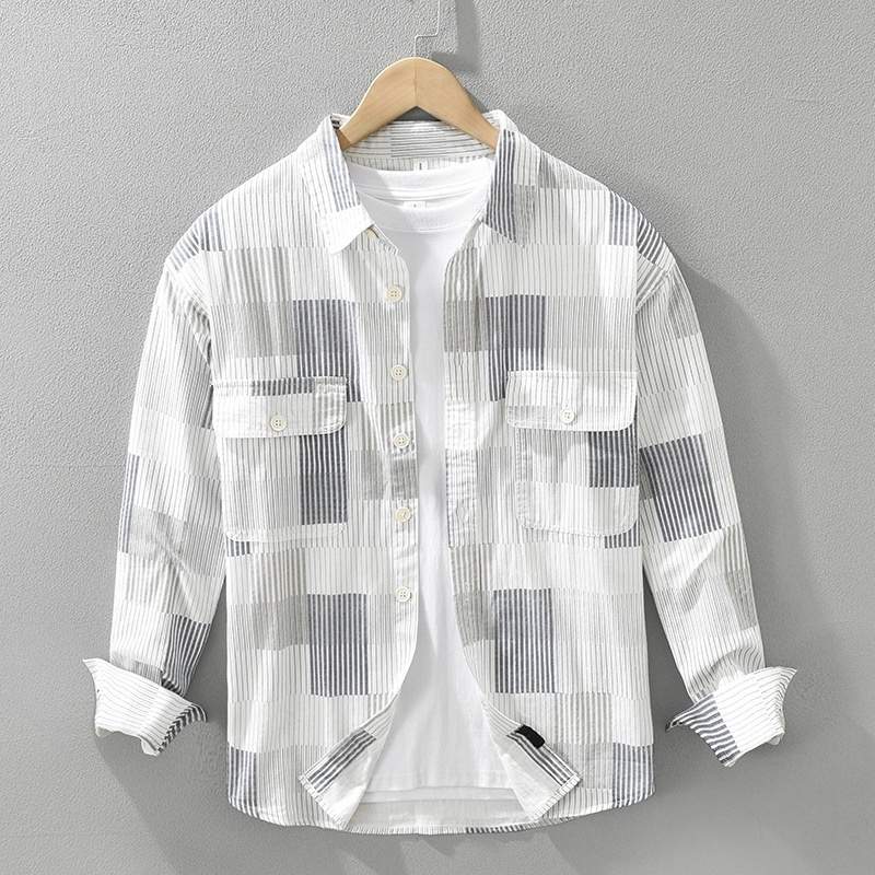 - チェックシャツ 長袖シャツ シャツ 新品★未使用 コットンシャツ 開襟シャツ トップス カジュアルシャツ【M7321】白 L