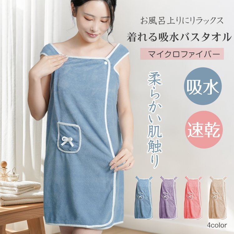 - 送料無料 ラップタオル バスローブ バスタオル ポケット付 速乾 タオル 風呂上がりタオル 巻くタオル マイクロファイバー 柔らかい ap128