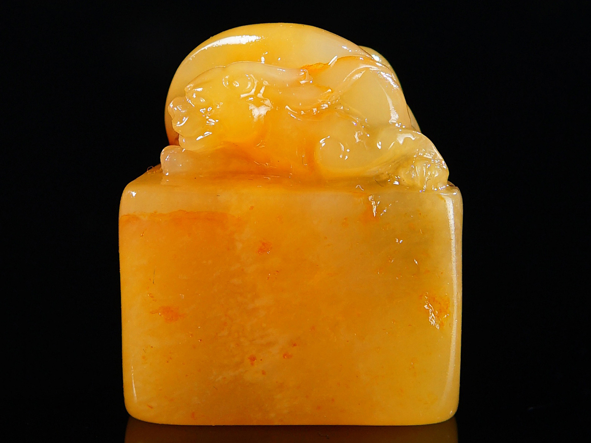 - ▽鴻▽金石篆刻 寿山田黄石彫 魑虎鈕素章 印材 鑑定証書付き 共箱 時代物 中国古美術 骨董品