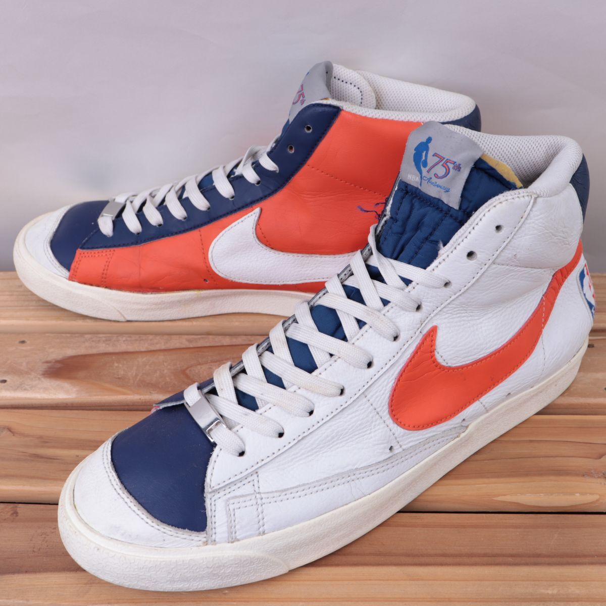 - z793 ナイキ ブレーザー ミッド 77 US12 30.0cm/白 ホワイト オレンジ 紺 NIKE BLAZER MID 77 EMB ブレザー メンズ スニーカー 中古