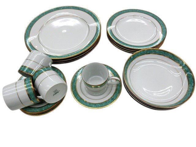 - キングラム[19]Ashford アッシュフォード カップ&ソーサー/プレート(28/21cm)/ボウル 金彩 グリーン系 各4点 洋食器セット 1円~@D223 S