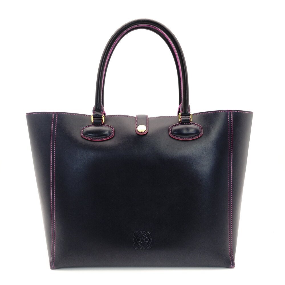 - ロエベ LOEWE アナグラム レオ レザー トートバッグ ネイビー×パープル ロゴ ショルダー レディース 7-9-636