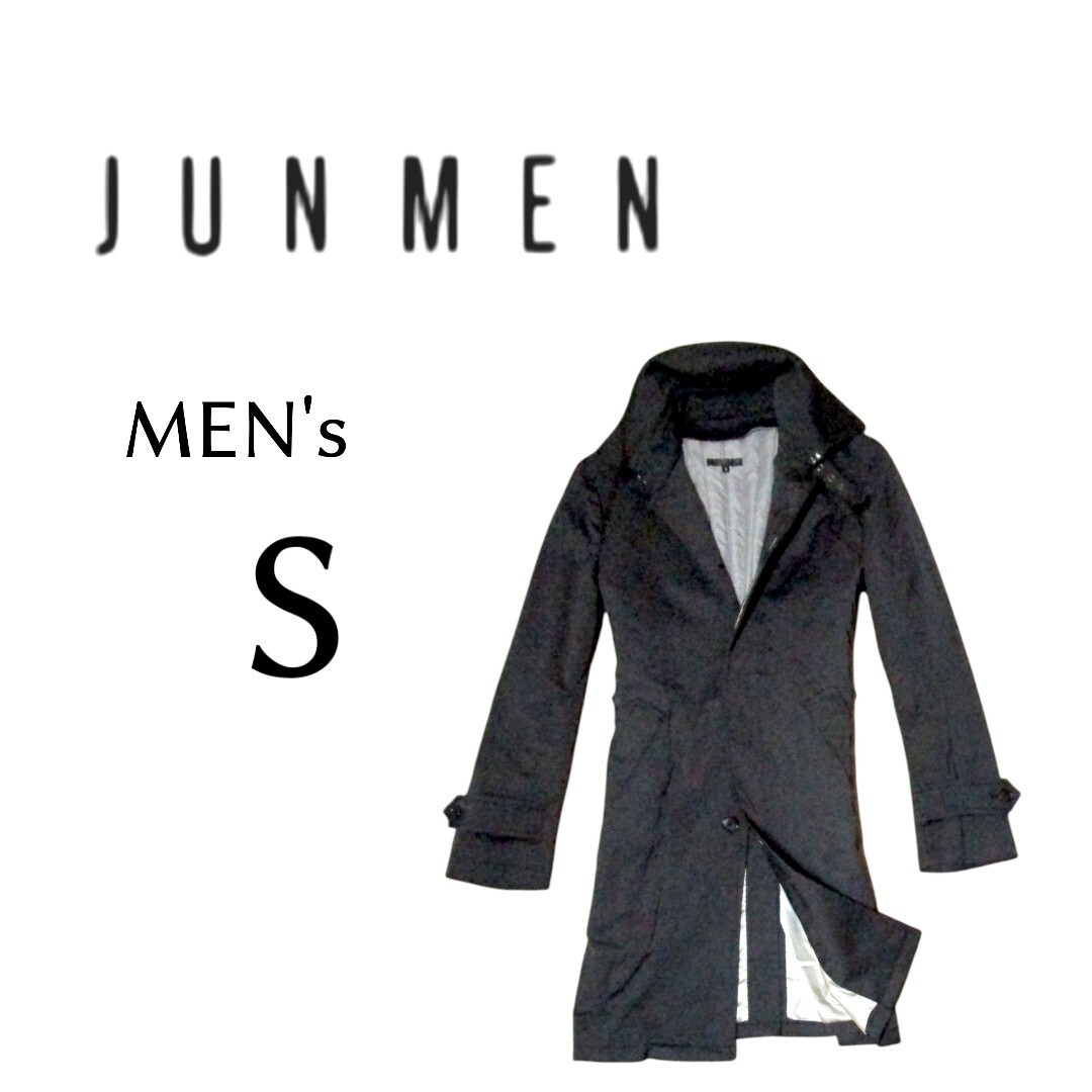 - メンズSサイズ JUNMEN 防寒ライナー取外可ステンカラーコート 黒色